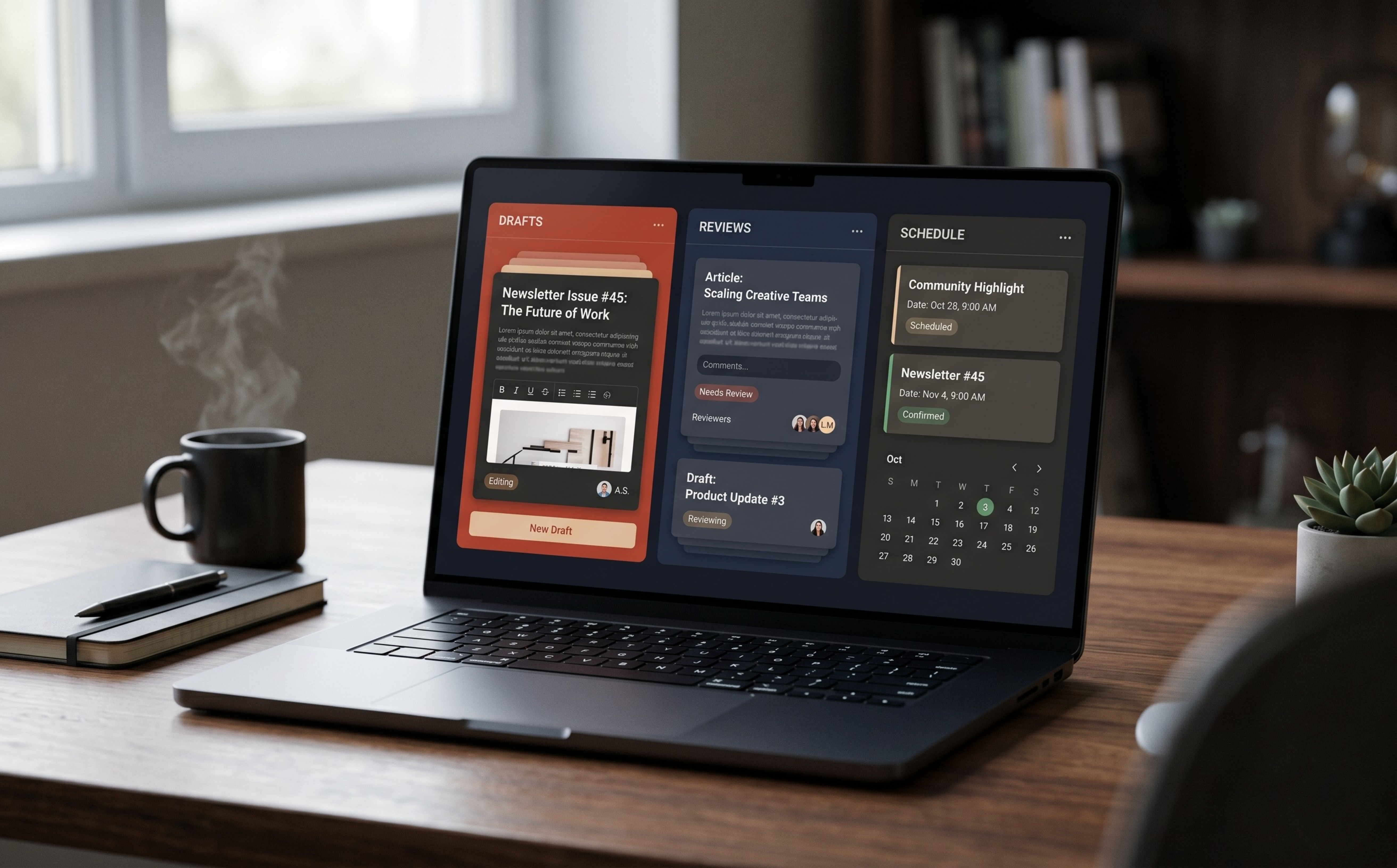 Draft, review, approve, and deliver in one workflow built for publisher teams.